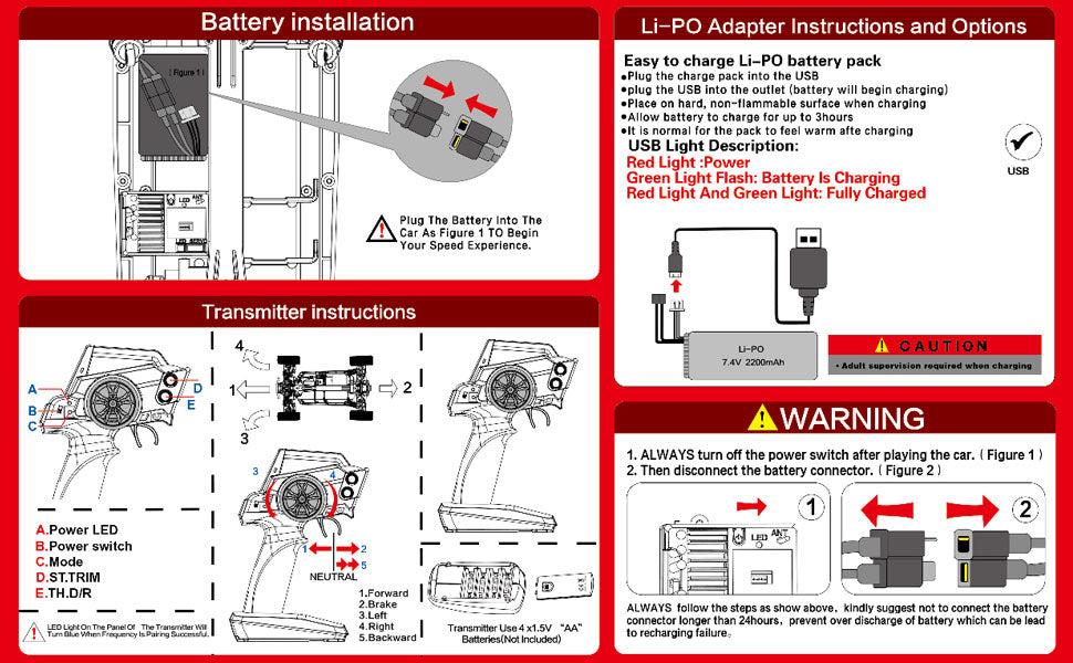 High Capacity Battery: 7.4V 2200mah rechargeable battery, charge 180min, work 8min.